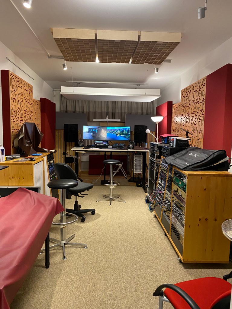 07.11.2022 – Im wundervollen Tonstudio Hellersdorf (mit Tonmeister Peer Triebler & Co.): Senatsförderung für das „Snatch Jazz Trio“…was für eine entspannte Athmosphäre – dankbare Zeit!