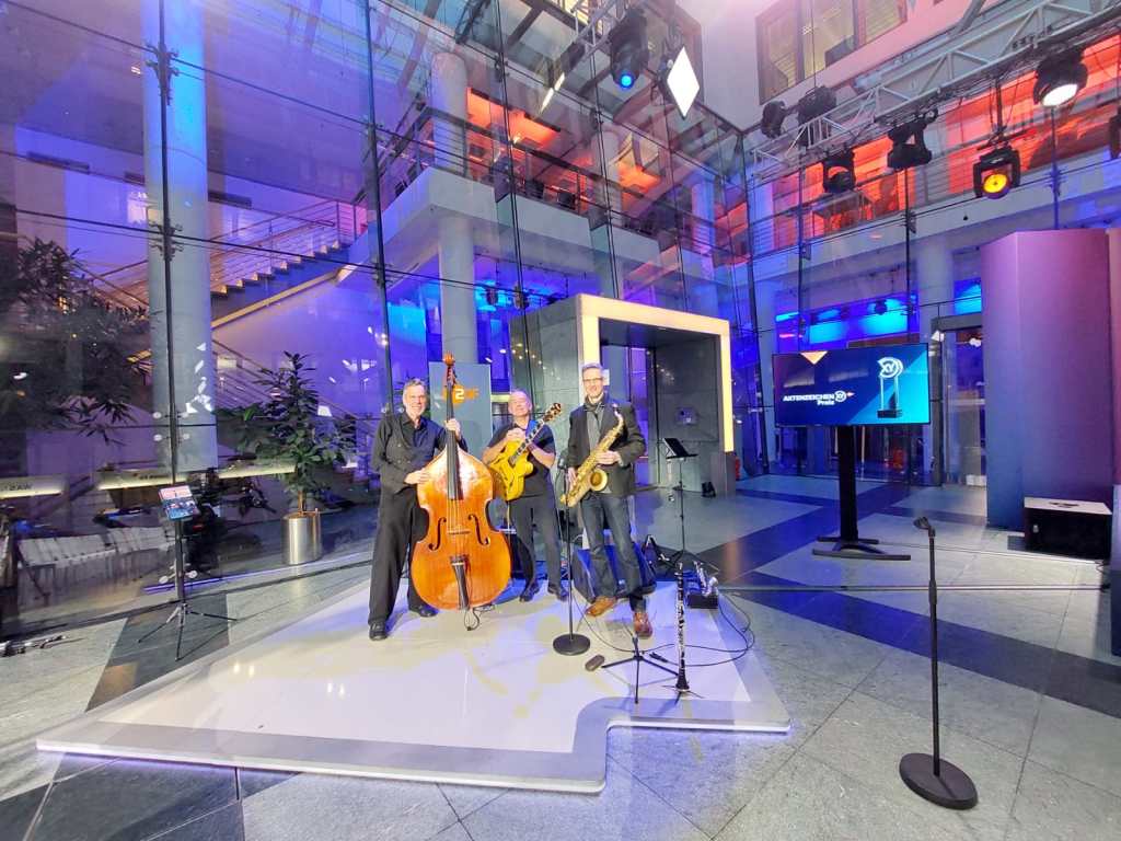 24.11.2022 – ZDF-Hauptstadtstudio: Verleihung der XY-Preise. Sehr tolle Athmosphäre, interessante Menschen und (wie seit Jahren) schöne Musik mit dem „Snatch Jazz Trio„.