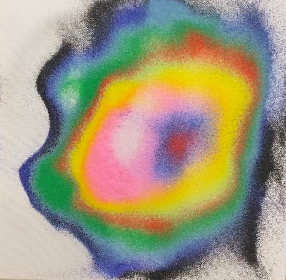 Mit Sandpartikeln auf meinem Verstärker konnte ich durch Klänge Bilder und Videos produzieren…